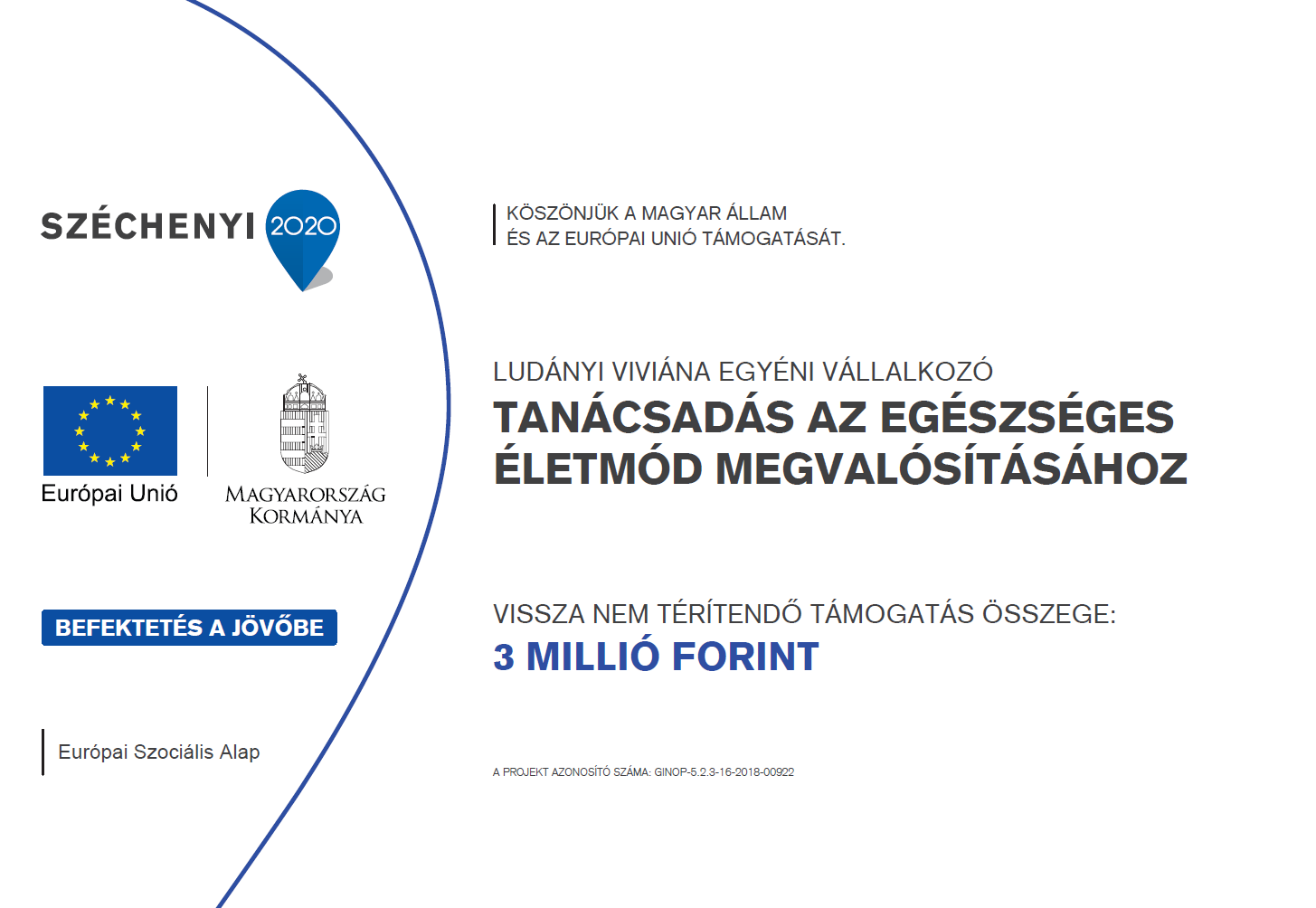 Ludányi Viviána egyéni vállalkozó - "Tanácsadás az egészséges életmód megvalósításához" pályázat